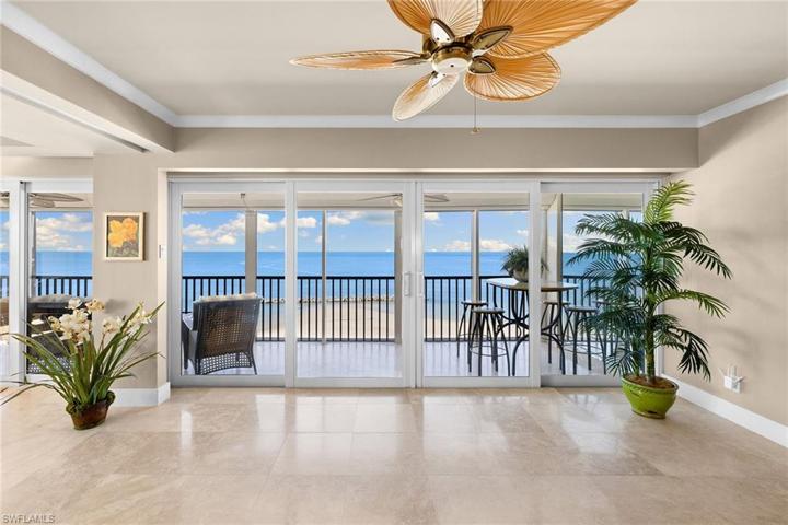 Spectacular beach-to-bay end residence on the sand, offering magnificent panoramic views of the beautiful Gulf of Mexico and Doctor’s Pass. Within the highly sought-after and rarely available Gulf View Beach Club, it showcases breathtaking views of turquoise waters, sugar white sands and dolphins playing on the unique cove-style beach, south of the pass. This beautiful three-bedroom, three-bath, totally renovated and furnished residence offers 2,430 square feet under air and 2,904 total square feet. The spacious floor plan features a luxurious open living and dining area with wet bar, and a primary suite, all overlooking the oversized 32-foot direct beachfront lanai to enjoy gulf views and awe-inspiring evening sunsets. The gourmet kitchen, with an oversize island, overlooks the bay and features a 37-foot balcony to enjoy morning coffee and bay views. Gulf View Beach Club epitomizes exclusivity with its intimate community of only 32 residences, offering a beachfront pool and deck, direct beach access, community room, exercise room, live in on-site manager, individual storage rooms, paddleboard and kayak racks. South of the pass, minutes to downtown 5th Avenue South.