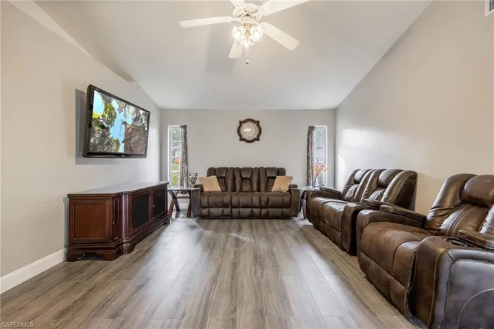 Discover Alva, Florida – Southwest Florida’s best kept secret! If you’re seeking privacy without sacrificing convenience, this property offers the perfect balance. Just under 10 minutes to dining, parks, shopping, and schools – it’s an ideal location for those who want peace and accessibility! Set on over an acre of land, this home features a newer metal roof, a pool and spa, a 3-car garage, and more than 2,100 square feet of living space – ticking all the boxes! As you step through the front door, you’ll immediately feel at home. The split floor plan includes two dedicated living rooms, a versatile flex space and a beautifully updated kitchen with a stunning view of the pool and landscape. The spacious master suite provides a private retreat with his and hers closets, dual sinks and a walk in shower. The office/den offers a quiet space to work or relax. Two guest bedrooms and a freshly updated guest bath complete the interior, while new laminate flooring and fresh interior paint add to the home’s appeal. Enjoy cool Florida nights on your screened-in pool deck, where you can unwind under the stars. Recent updates include a new water heater, pool pump, and well pump – all replaced within the last year. Plus, there’s plenty of room to expand! The back section of the property can be cleared to accommodate a new building or additional features. Whether you’re looking for a peaceful retreat or room to grow, this home has it all!