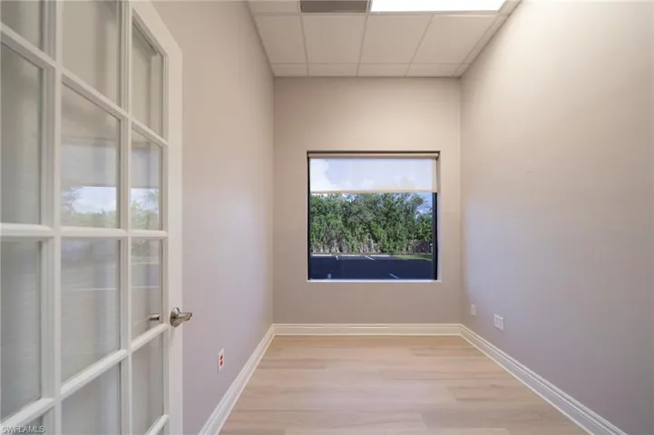 Office space available for rent in the vibrant city of Bonita Springs. Continently located a block off of US 41. Office includes Reception area, 6 offices, 2 of which have a shared hallway. breakroom, kitchen, & utility room. Building is zoned IL which has many uses. There is also a roll up door at the back of the unit that can be opened back up and used.
