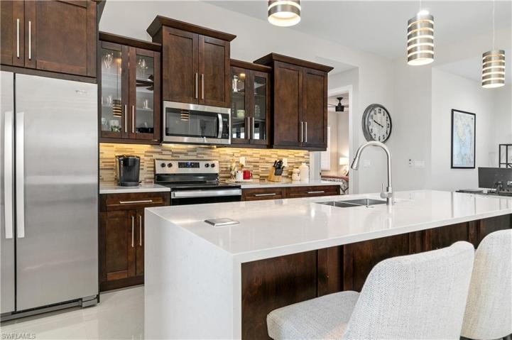 Why wait to build? This stunning home built in 2022 in the NW Cape Coral is the epitome of modern luxury. Every detail has been carefully considered to create a space that is both functional and aesthetically pleasing. Starting with the exterior, the home has great curb appeal with a pavered driveway and entryway, and features a pavered, screened lanai, and is fenced. The interior boasts 3 spacious bedrooms, 2 luxurious baths, stainless steel appliances, wood shaker cabinets, quartz countertops, pendant lighting, tile throughout, and tray ceilings. The owner’s suite is the perfect retreat and features a soaking tub, a separate shower and dual vanities. Take pride in hosting family and friends outdoors with your very own outdoor kitchen, complete with a Napoleon Grill, or enjoy a dip in the saltwater, pool, accompanied by a heater and an upgraded pool pump. Rinse off before or after a swim in the outdoor shower. This home is equipped with a reverse osmosis system for the entire home with a 500-gallon tank. Just imagine spending your weekends lounging by the pool, soaking up the sun, and enjoying the tranquility of your own private retreat when you make this home your own!