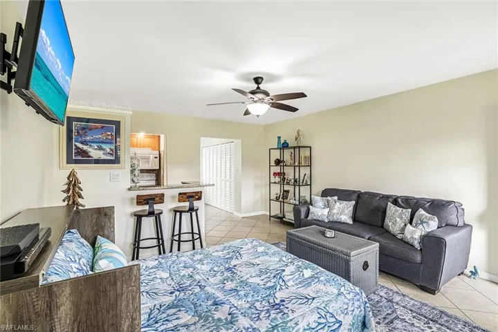 Don’t miss this well-maintained and updated first-floor studio condominium in the Seabreeze complex. In a popular Collier Boulevard location with proximity to Marco Island’s Residents Beach entrance and across from many restaurant’s, it’s the ideal Island getaway. Kitchen has granite bar countertop, tile backsplash, wood cabinets, and GE range and refrigerator. The bath has marble vanity and walk-in tile shower with large rain showerhead. This west-facing unit is bright and inviting. Unit is freshly painted and has neutral tile flooring throughout. Air conditioner is one year old. HWH is approximately five years old. The buildings were recently painted, impact doors and windows installed and new roofs completed. Amenities include heated community pool, clubhouse, laundry facilities with new impact windows, bike racks and grills. Parking space behind the building, assigned G3 and guest spots available. Quiet unit, no noise from Collier Boulevard. No water intrusion during storms, according to the owner. Extra storage available. Locker G3 assigned.