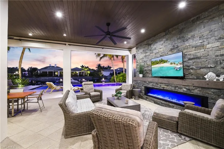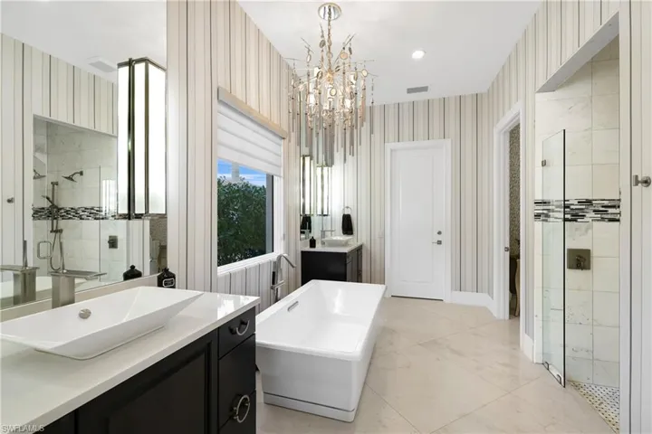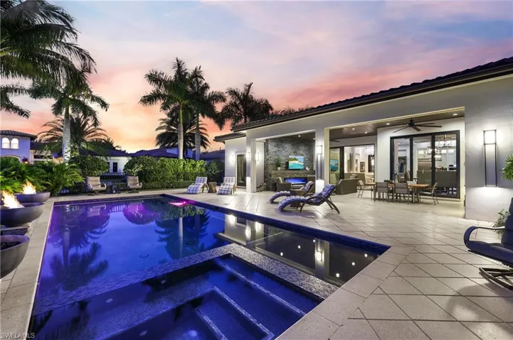 Come visit this extraordinary estate home in Miromar Lakes, the size and scale of the furniture, accessories and architectural feature are all in harmony, you will experience every exquisite detail of this home as a as you walk through, the current owner has invested many hours in making sure this home takes your breath away from the min you enter the front door, every light has been hand-crafted personally for this home, wide planked hardwood floors throughout, designer wall and ceiling finishes, led backlit shelving in walk-in closet, ensuite bathrooms with custom mirrors and vessel sinks, stainless outdoor kitchen with gas grill, refrigerator, sink and additional burners, salt water pool with integrated flush spa, whole house / landscaping exterior lighting illumination. natural gas fire bowls add a picturesque back drop, electric screens encapsulate the covered outdoor living space, oversized floating composite dock, whole house generator, oversized three car garage with epoxy floors. Miromar Lakes features 700 acres of freshwater lakes, with two marinas, boating, fishing, swimming, water skiing, 3 miles of sand beaches, two gourmet restaurants with culinary chef, club house, pool, full-service spa, fitness center, bocce crts, golf, tennis and pickleball along with an onsite amenities’ director with ongoing social activities. Miromar is just 10 minutes from Southwest International Airport and next to Florida Gulf Coast University with large shopping malls within minutes.