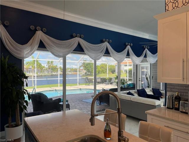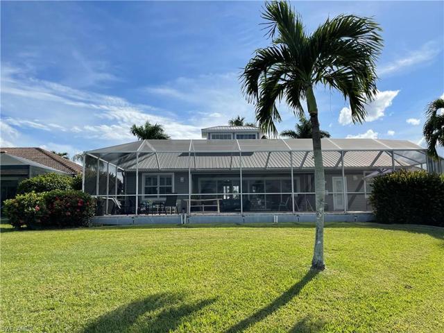 Motivated Seller! Location, Location! Gorgeous Florida Island Style Home on Oversized Corner Lot with Breathtaking Wide Basin and Intersecting Gulf Access Canal Views! Large Back and Side Yard. Beautiful Entry Foyer w/French Doors, Plantation Shutters, Transom Window. Many Lovely Architectural Details Throughout! Family RM Stuns with Gorgeous Pool and Water Views and the adored Cupola brings in a Lot of Natural Light! More Stand Out Features Include: Crown Moldings, Soaring Ceilings, Paver Drive/Walkways, Front Entry Porches, Plantation Shutters, Oversized Side Load Garage w/room for 3/4 plus Cars/Storage, Built Inground Shed, and Metal Roof. Large Inground Heated Pool, Vaulted Cage, New Above Ground Spa. Huge Wrap Around Dock w/14K LB Lift. Metal Roof. Cul De Sac Location right around the corner from the Four Mile Cove Eco Preserve offering Trails and Kayaking. Just minutes to the Open Waters of the Caloosahatchee River. Close to Shopping, Dining, Midpoint Bridge, and short drive to the Beaches of SW Florida. Tax shows 2 Bedrooms yet this Home has possibility of 3 or 4 Bedrooms. 3rd is currently a Den w/French Doors, 4th is currently a Large Bonus RM. 4485 Approx Total Area.