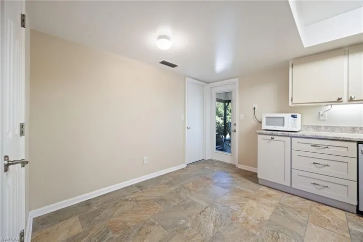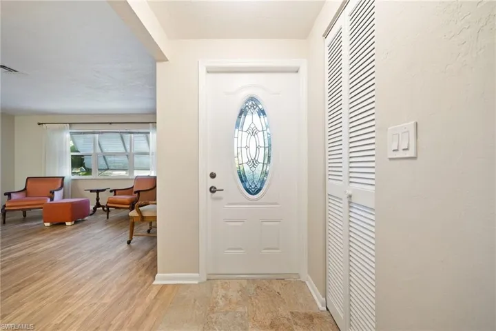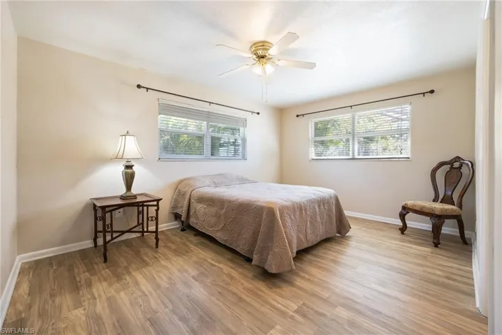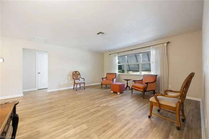 Remodeled after Hurricane Ian with fresh finishes and updates, this Fort Myers single-family home in Tahitian Shores delivers easy Florida living on a spacious corner. Inside, you’ll find new flooring, new baseboards, new interior doors, and double-pane windows (non-impact) for added comfort and efficiency. The layout is simple, functional, and flexible: 2 bedrooms, 2 full baths plus a large bonus/flex room that can easily serve as a home office, gym, or family room. Enjoy meals in the dedicated dining area or the eat-in kitchen, which looks out to the fully screened lanai—perfect for morning coffee and breezy evenings. Step outside to a private backyard oasis with mature, shade-giving trees and tropical charm, featuring macadamia, camphor, and garambola (star fruit) trees. The oversized property leaves plenty of room to add a pool and spa, expand the home, or create the outdoor entertaining space you’ve been dreaming of. No HOA restrictions means more freedom for boats, hobbies, and your lifestyle. Convenient to Sanibel Island, Fort Myers Beach, Margaritaville Beach Resort, plus dining, shopping, and entertainment—while still tucked into a quieter neighborhood setting.