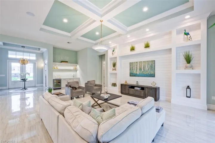 Indulge in the epitome of luxury and tranquility with this stunning McGarvey Custom Home nestled in Naples Reserve’s serene Parrot Cay neighborhood. This award-winning estate features a spacious master suite complete with dual walk-in closets, a lavish spa-like bathroom featuring a standalone soaking tub and glass shower, and two guest en-suites with direct pool access. Entertain effortlessly in the generous great room, complemented by an elegant dining area, wet bar, versatile den, and an outdoor kitchen overlooking a pristine pool and spa. High-end interior finishes abound, including quartz countertops, tray ceilings, and a spacious 2.5 car garage. Positioned on a corner lot with a coveted west exposure, this custom-built oasis promises the perfect blend of relaxation and luxury living. Naples Reserve offers a wealth of recreational amenities, from a beach entry pool and fitness center to dog parks, sports courts, and dining venues. Explore a variety of water activities just moments from your doorstep, ensuring a well-rounded retreat for leisurely living. Conveniently located near Downtown Naples, Marco Island, and the picturesque beaches of Southwest Florida, this exceptional property invites you to experience the pinnacle of elegance and sophisticated living in Naples. Don’t miss the chance to call this private sanctuary your own.