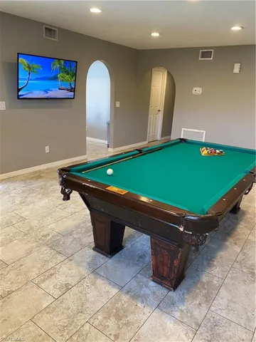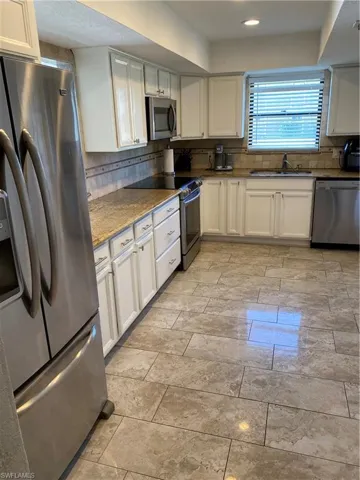 Welcome to this beautifully updated, 2-bedroom, 2-bathroom home perfectly located in the heart of Cape Coral, across the street from the highly desired Palmetto Pines Country Club, public always welcome! Updates include beautiful wood cabinets in the kitchen and bathrooms with granite countertops, stainless steel appliances, 12X24 porcelain tile floors, Walk-in showers and recessed lighting throughout. Community Pool, Covered Carport parking space with outside storage.