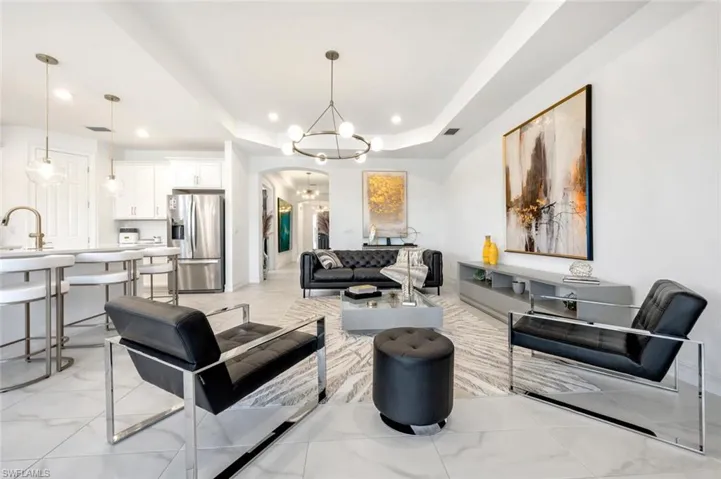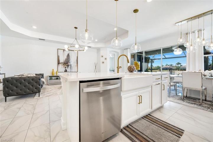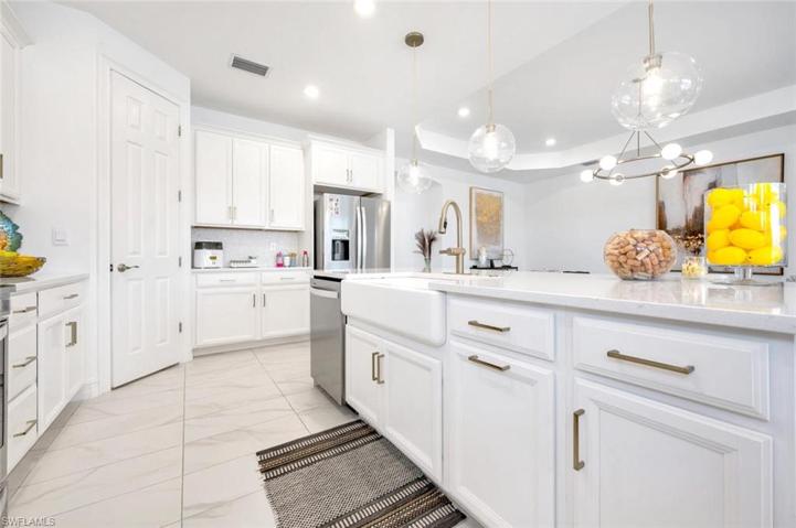 This Ashbury floor plan pool home located in Seasons at Bonita features over 2400 sf of living space and built in 2022. This pool home encompasses 4 bedrooms, den, 3 full baths, a pool bath, 2 car garage with ac, an epoxy floor and extended driveway. Custom features include: 42″ kitchen cabinets, quartz counters, backsplash, apron sink, SS appliances, tray ceilings, upgraded West Elm custom lighting, porcelain tiles and lots of natural light throughout the home. The primary owner’s bath has dual sinks, walk in shower, large tub and a custom closet. You will be living the SWFL dream enjoying your pool all day and having barbecues with your outdoor kitchen, and beautiful sunrise views overlooking the lake through your picture frame pool cage with a pool deck extension. Located in a gated community with lots of amenities included; Clubhouse, Resort style pool with beach entry, lap lanes and ample sundeck, pool-side tiki hut, lounge chairs and an artificial white sand beach with hammocks for relaxing, Social room with a fully equipped kitchen, Nature trail, Fishing, Biking, Tennis, Bocce and Pickleball courts, Dog parks and Fitness center. Centrally located between Naples and Ft Myers.