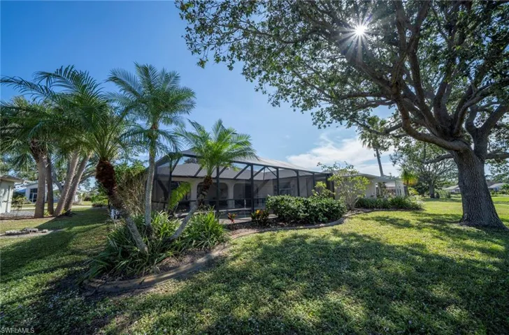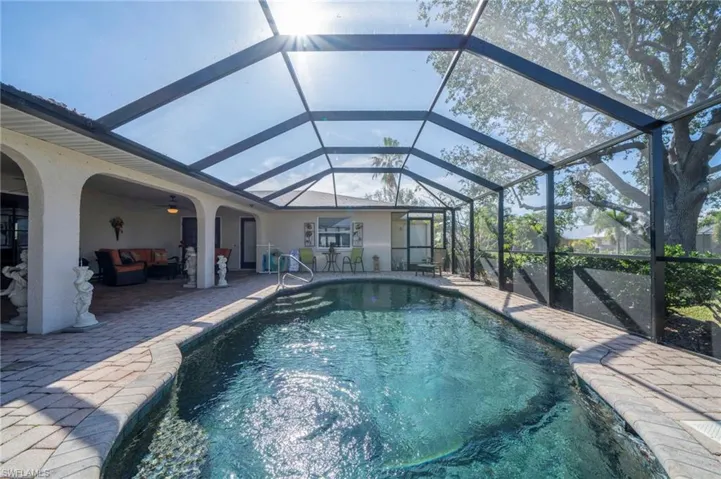 Welcome to your dream home in the sought-after community of Burnt Store Meadows. This spacious 3 bed/2 bath home is being sold turnkey furnished, so just bring your toothbrush. Some of the key features of this home are gorgeous oak wood flooring in most rooms, giving a feeling of warmth and sophistication. The modern kitchen has granite counters, with ample storage, stainless appliances, and a custom pantry. The open living room has custom plantation shutters, with French doors leading out to the private pool oasis. Enjoy the pavered lanai, and the heated pebble tech surfaced pool. This area is recently rescreened. The pool/lanai overlooks a greenbelt area with mature landscaping. The primary bedroom also has French doors leading to the lanai area. The primary bathroom has a jetted tub and separate shower. The family room/office has decorative columns, just off the dining room. The split plan has guest bedrooms off the family room, and a pool bath door off the bathroom. The large laundry room has a built in hamper and sink. While the year built is 1989, this home was gutted and rebuilt in 2004 after Hurricane Charley. The tax records show a condition year of 2008. The new roof was installed 2 years ago, and air conditioning and water heater replaced 3 years ago. Make your appointment today to see this beautiful home in Burnt Store Meadows, a community close to I-75, US 41, shopping, restaurants and golf.