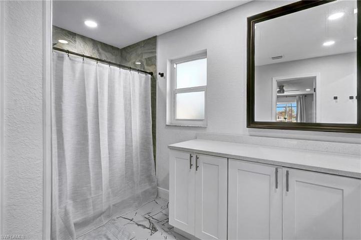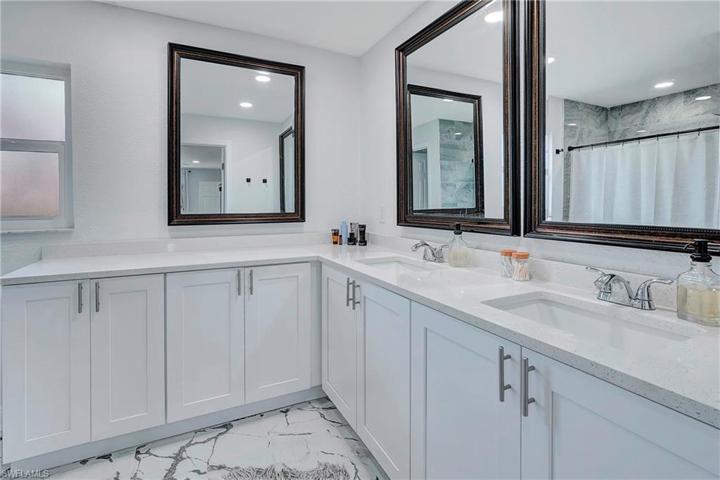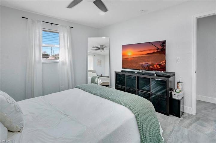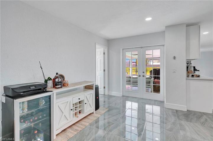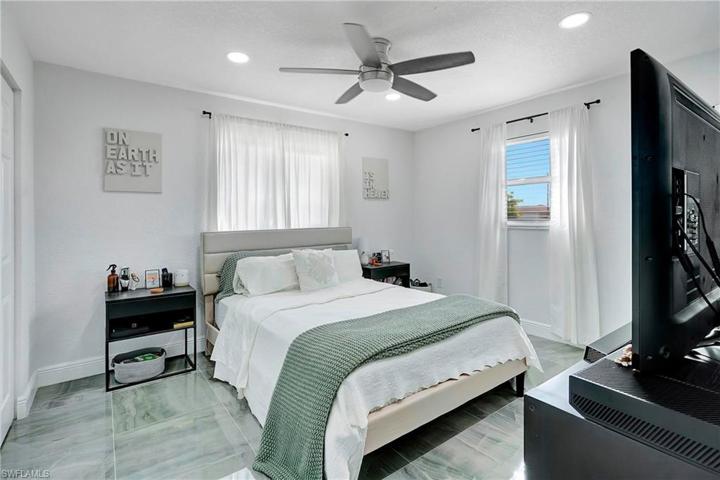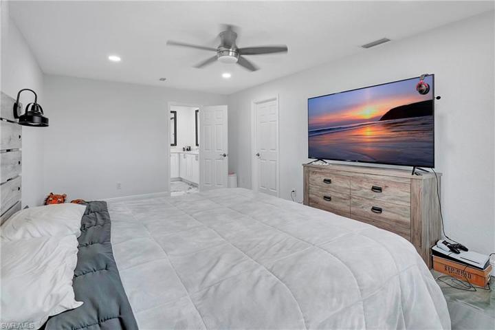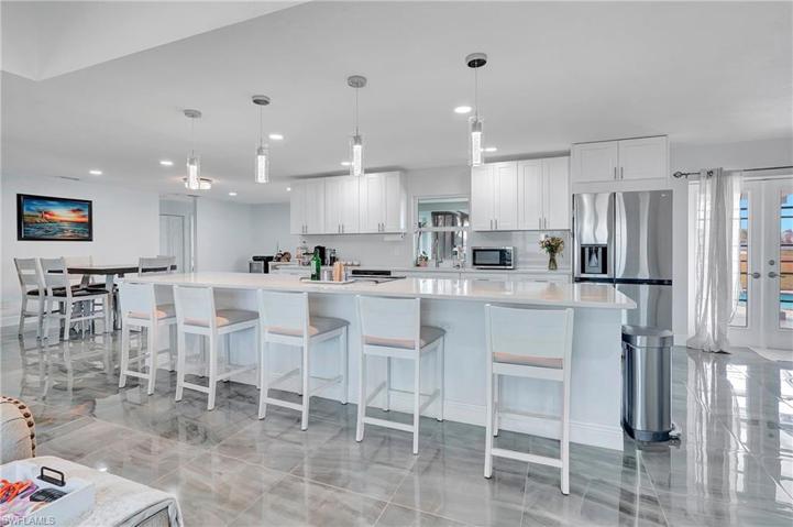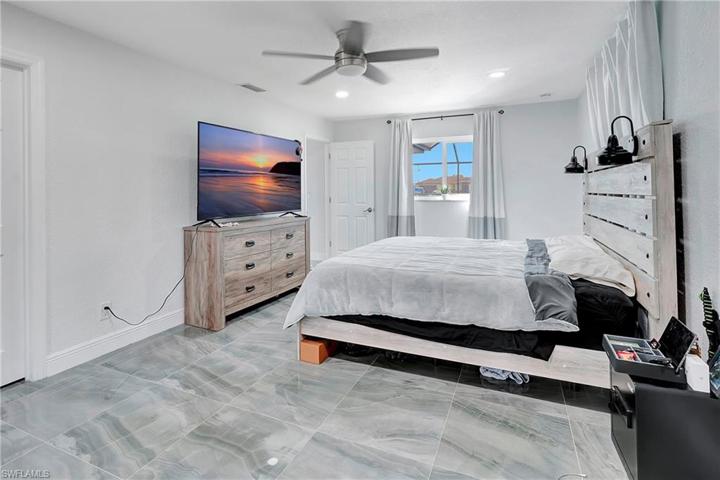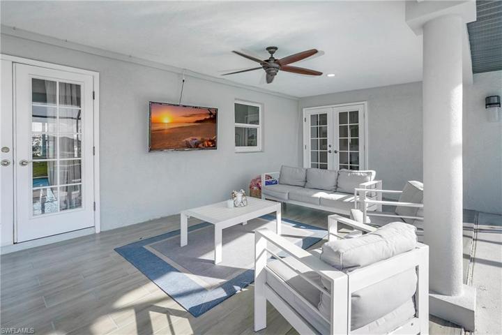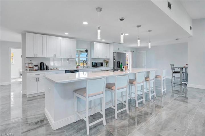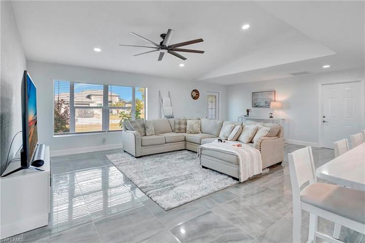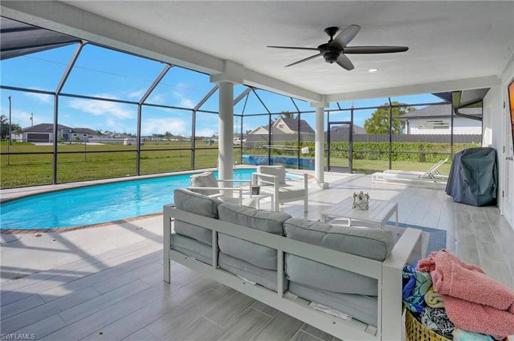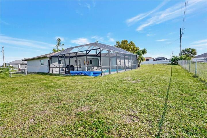 Come on in and see this gorgeous pool home in sunny Southwest Florida. NEW ROOF 2020! Hurricane Impact Windows! No Flood Zone! This charming home has an open concept floor plan that shows off the tastefully updated kitchen with its beautiful quartz counter tops, hard wood cabinets, stainless steel appliances, modern light fixtures, and an enormous kitchen island. The spacious main living area offers high vaulted ceilings and tons of natural lighting, making it a perfect atmosphere for entertaining. The inviting French doors guide you out to a large screened in patio with charming tile flooring. Sit by the pool and soak up the abundant amount of sunshine offered from the Southern Rear Exposure. The split floor plan makes the master bedroom feel nice and secluded. Check out the large walk-in closet on your way to the stunning master bathroom, which includes a his and hers sink and plenty of cabinetry for storage. This home sits on an oversized lot and has a fully fenced in back yard. Conveniently located right off Pine Island Road. Perfect for commuting to work, shopping, and plenty of outdoor recreational activities. Furnishings are negotiable. Schedule a tour today!
