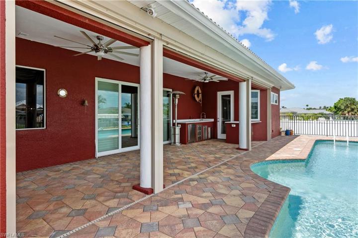 STUNNING! TRIPLE (3X) LOT DIRECT GULF ACCESS WATERFRONT HOME YACHT CLUB AREA. BUILT (2013) W/$750K IN CUMULATIVE BUILDER/OWNER UPGRADES IN THIS 4BDR, DEN, 3BTH, 5CAR A/C GARAGE, POOL/SPA. SOARING 14’/20′ DOUBLE TRAY CEILINGS, ALL IMPACT STORM RESISTANT GLASS WINDOWS & SLIDERS. DIAGONAL TILES WHOLE HOME W/CARPETING IN BEDROOMS. CHEFS KITCHEN W/42′ MAPLE UPPERS, COMMERCIAL STAINLESS STEEL APPLIANCES, LEVEL 5 GRANITE TOPS, WALK-IN PANTRY, 30′ EAT-AT-BAR & CENTER ISLAND WORK STATION. MASTER BEDROOM W/12′ DOUBLE TRAY CEILING, HUGE 12’X20′ HIS/HER WALK-IN CLOSET, DUAL SINKS, 6’X12′ TILED WALK-IN SHOWER. OPEN PAVER POOL DECK OVERSIZED (18’X40′) CUSTOM POOL, SUMMER KITCHEN & PALM TIKI HUT, W/TV. CUSTOM DOUBLE DOCKS W/LIFTS (12K +16K) & SUNSET TIKI HUT. LANAI HAS ELECTRIC ROLL-DOWN KEVLAR SCREENS FOR COMPLETE STORM COMFORT. 5 CAR A/C GARAGE IS CAR COLLECTORS DREAM. ALL BEDROOMS ARE DOWNSTAIRS EXCEPT 4TH GUEST ROOM + LOFT/DEN ARE ALL UPSTAIRS. HOME HAS WHOLE HOUSE NEW SOLAR SYSTEM FOR $0 ELECTRIC BILLS AND WHOLE HOUSE GENERATOR SETUP, SMART HOME WIRED, THIRD LEVEL OBSERVATION + SUNDECK AND SEAWALL HAS BEEN RECENTLY COMPLETELY REINFORCED W/WARRANTY. HOME COMES W/1 YR HOME WARRANTY.