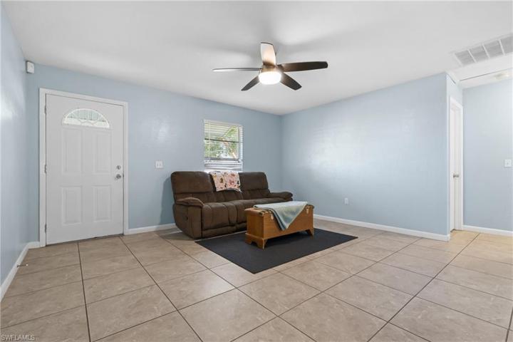 Welcome back to this remarkable opportunity to own a charming residence nestled in the coveted locale of Lehigh Acres, FL. Positioned conveniently near shopping centers, dining options, Gateway Schools, and Publix on Daniels Parkway, this prime location offers unparalleled convenience. Step inside this inviting single-story home, boasting nearly 1500 sq. ft. of living space. The kitchen has been impeccably remodeled, featuring upgraded countertops, wooden cabinets, and high-end stainless steel appliances. The primary bathroom has undergone a stunning transformation, now highlighting a walk-in tile shower and custom vanity. Additionally, the guest bathroom has been tastefully updated, further enhancing the home’s allure. Inside, discover a spacious family room, dining area, living room, 3 bedrooms, a den, and 2 full bathrooms, all meticulously arranged in a split bedroom floor plan. The expansive screened lanai is ideal for outdoor relaxation. The sizable backyard offers ample space for gardening or enjoying time with family and pets. Fully fenced and adorned with numerous fruit trees, the yard is complemented by lush landscaping. The list of home improvements is extensive, including surround sound wiring, full tile flooring, ceiling fans, a water system well, front-load washer & dryer, HVAC system, freshly painted interior, water heater, and more. This meticulously maintained property is truly a gem awaiting its new owner.