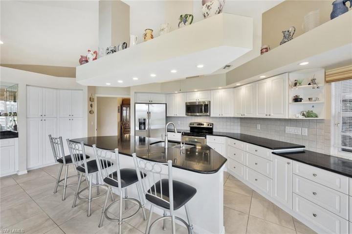 Beautiful direct access 4BR home in a very desirable area of Marco Island. Plenty of room to dock larger boats. Key lot with 159 feet of water frontage, private dock with lift and wide converging water views! Quick out to the Marco River and Gulf. This well maintained 4 bedroom 3 and 1/2 bath home offers soaring ceilings with tray ceiling in kitchen and sliding glass doors across the back. Open kitchen with granite counter and large bar seating area, breakfast area and formal dining off the main living room. The primary bedroom is spacious, en-suite bath with frameless walk-in shower and large closets. The spacious lanai offers lots of undercover seating room as well as sunning areas. New roof in 2018, whole house water filter system and water softener.