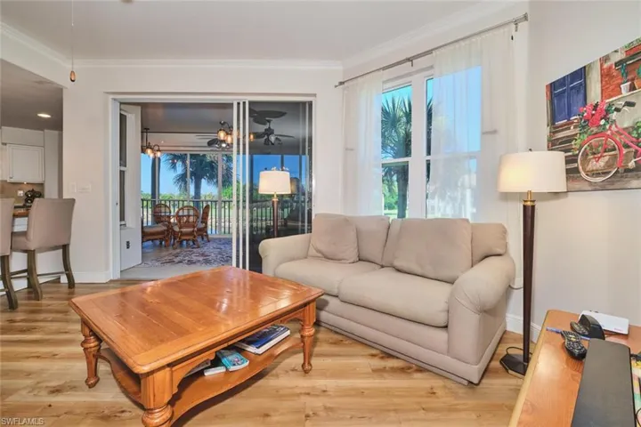 3-bedroom condo with sunset views overlooking a lake and the 14th island green! The sellers removed the wall in the kitchen for an open layout to the living room, with a movable butcher block island—making the home feel brighter, larger, and more inviting. This rarely found 2nd floor “Cambridge” is just a short walk to the clubhouse, pool, Sandpiper Restaurant, pro shop, Bocce courts and Pickleball and tennis courts. The kitchen has white cabinetry, granite countertops, and stainless steel appliances. Acrylic sliders, Electric storm shutters and No see-um screening on the lanai. Enjoy direct access to the lanai with views of the golf course’s 14th signature hole and putting green. The lanai is equipped with roll-down hurricane shutters and vinyl sliders, allowing it to be enclosed and air-conditioned—adding approx. 220 sq ft of additional living space. Interior highlights include hurricane impact windows, new daylight LED ceiling fans, wood-look laminate flooring throughout, and tile in the bathrooms and lanai. The primary suite features a seamless glass-door shower and dual sinks. Offered furnished with some exclusions—move-in ready with style and convenience! Lexington Country Club is a 24/7 guard-gated golf, tennis, and pickleball community with a full calendar of activities. A short drive to Sanibel Island and Fort Myers Beach.