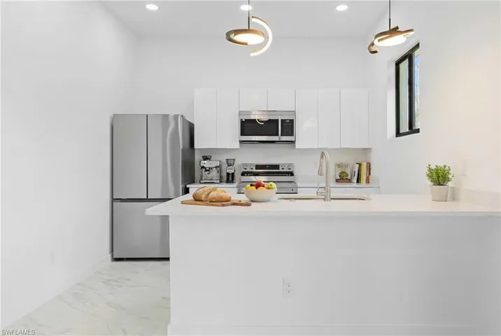 This home features 4 bedrooms and 3 bathrooms in a split layout, providing a great balance of privacy and functionality. The kitchen is thoughtfully designed with quartz countertops, contemporary cabinetry, and stainless steel appliances, all opening to the main living areas.
