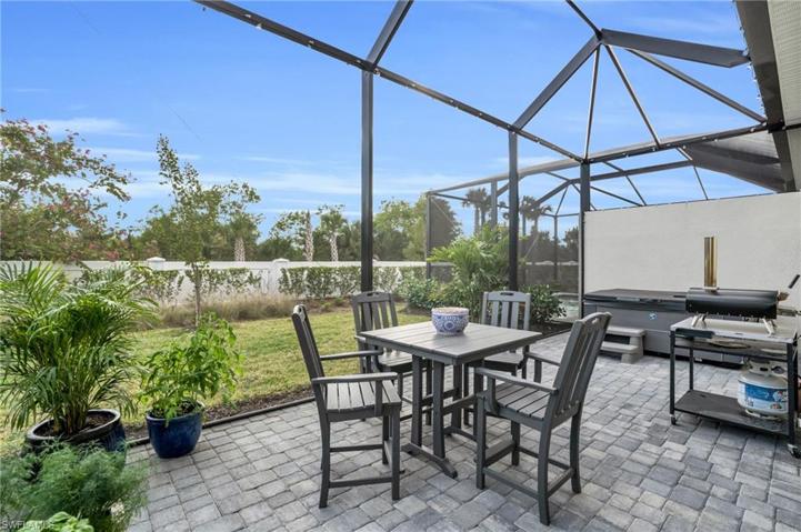 Most upgraded BAYPOINTE floor plan with over $50,000 IN POST CLOSE UPGRADES! Attached villa features top of the line upgrades by Toll Brothers including wood plank tile, extended lanai with panoramic screen enclosure for optimal preserve view, outdoor kitchen, 8 ft tall doors, & recessed lighting throughout every room & hallway! The top of the line upgraded kitchen includes 42″ cabinets, quartz counters, larger GAS stove, 36” oven, kitchen hood, double sink, & an added Kinetico water system under the sink. Upgrades added AFTER CLOSING include plantation shutters throughout, decorative mirrors & light fixtures, custom Wayne’s coating added in dining room & tray ceilings, $10,000 brand new salt water hot tub, custom office built-in with shelves, bookcases, & custom closet shelving. The outdoor space is just as impressive with the extended lanai option, outdoor kitchen running on house gas, string lights on the patio that create the perfect ambience to enjoy an evening relaxing in your brand new hot tub! As private as it gets with a quiet preserve view & Clusia trees. Resort style pool, state of the art fitness center, tennis, pickleball and more! Roof & exterior paint included in HOA