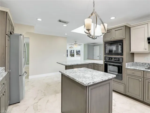 Welcome to your dream waterfront retreat! This bright and airy 3-bedroom, 2.5-bathroom home is nestled at the end of a serene canal and features a private boat dock with a lift, offering direct access to the water for boating, fishing, and outdoor recreation. With tons of natural light streaming through large windows, every room feels warm and inviting, creating a perfect setting for both relaxation and entertainment. This open concept home features sleek, easy-to-care-for tile flooring throughout making it both stylish and easy to maintain, perfect for a laid-back waterfront lifestyle. The spacious kitchen is a chef’s dream, featuring granite countertops, updated appliances, a breakfast island, and ample cabinet space. Enjoy the split bedroom floor plan offering privacy and comfort with the master suite on one side of the home, and the guest bedrooms on the other—ideal for families or hosting visitors.