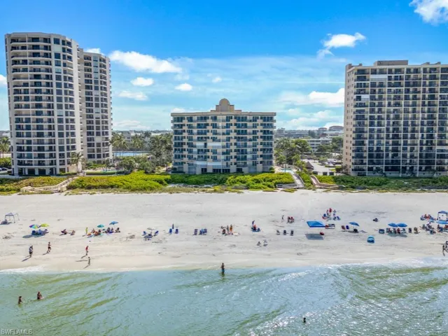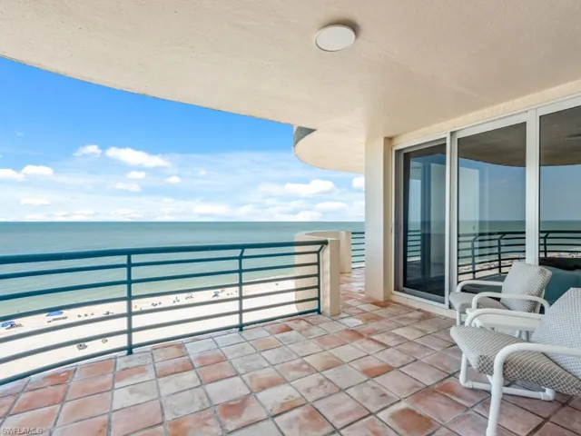 Nestled on the pristine shores of Marco Island, this beachfront penthouse epitomizes unique coastal living. With a sprawling 5,428 square feet, it is a sanctuary boasting breathtaking views of the Gulf of Mexico from its 3 southwest exposure balconies! The interior is bathed in natural light, it has all new impact windows & sliders, & is accentuated by skylights creating an inviting ambiance throughout. This sprawling residence has both a living room & a family room, and it has been cherished by only one owner. It features five bedrooms, 4-1/2 baths & an office, providing ample space for relaxation, work & entertaining. The wine storage adds a touch of sophistication, too. This front unit, with 180 degree Gulf views, is situated in a peaceful & low-density building at the south end of the island, where tranquility permeates every corner. Whether enjoying a quiet evening in or hosting gatherings with loved ones, this beachfront penthouse offers the epitome of coastal elegance, blending comfort & sophistication seamlessly against the backdrop of spectacular Gulf views & watercolor sunsets. Two undercover parking spaces are included plus building amenities: heated pool & spa, social, fitness & card rooms, grill area, tennis/pickleball courts, & on-site Manager. Some photos are virtually staged.