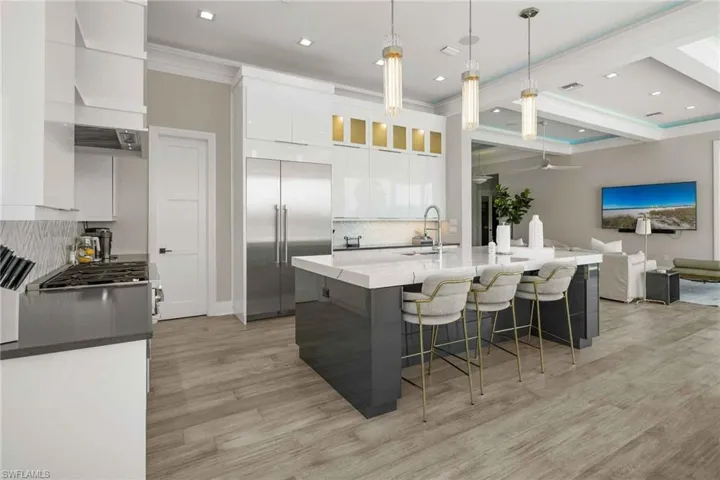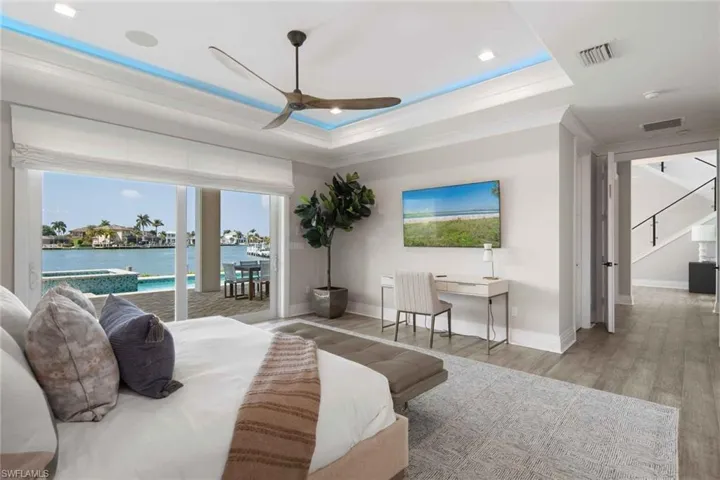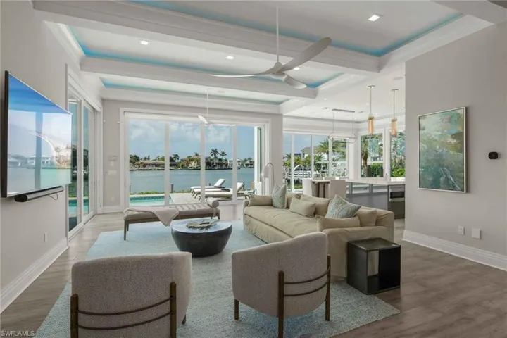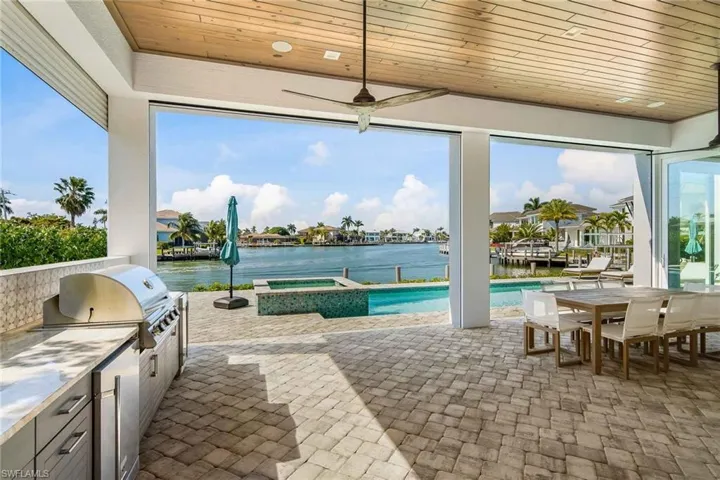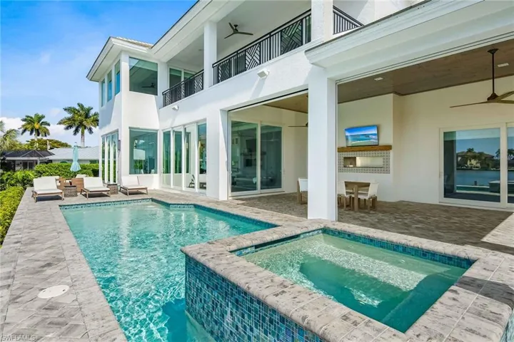 New co-ownership opportunity: Own one-eighth of this professionally managed, turnkey home by Pacaso. This newer construction coastal contemporary offers two levels of luxurious living with water views and direct bay access. The open plan great room has oversized impact glass doors that open to an inviting waterfront patio, pool and spa. Doors from the dining room lead to the relaxing lanai with a cozy fireplace and outdoor kitchen. The bright, gourmet kitchen has stainless steel appliances and an island for food prep and dining. The primary suite, which opens to a balcony with water views, has an en suite bathroom with a relaxing soaking tub, tiled shower and two vast vanities. The home, which has a 3-car garage with a rear overhead door for yacht loading, comes fully furnished and professionally decorated.