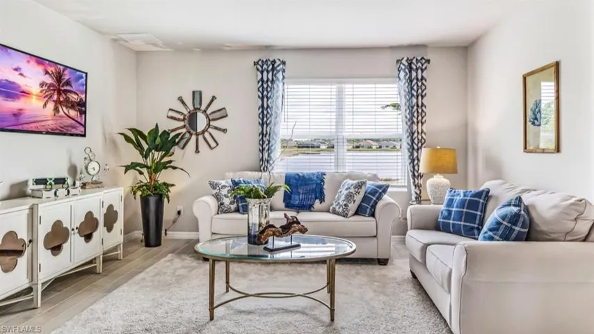 Ready now! WELCOME TO YOUR BRAND-NEW HOME! This is our CALI floor plan at 1828 square feet. Great well & septic NE Cape Coral location right near Andalusia Blvd and NE 32nd Ln. This home comes with 36” designer kitchen cabinets with hardware, quartz kitchen counters with under-mounted sink, solid surface bathroom counters, 6” x 24” plank tile everywhere except the bedrooms, carpet in bedrooms, ceramic tile in both bathroom showers, stainless kitchen appliances, white washer and dryer, blinds on all windows except for slider, paver driveways and lanai, covered lanai, full irrigation system, electric garage door with opener, a home-is-connected convenience package, and full builder’s warranty. We offer several varieties of financing options and ways to contribute to your closing costs. This is why owning a brand-new home from America’s largest builder is going to be your best option.