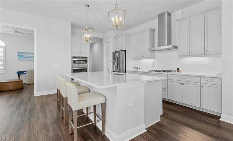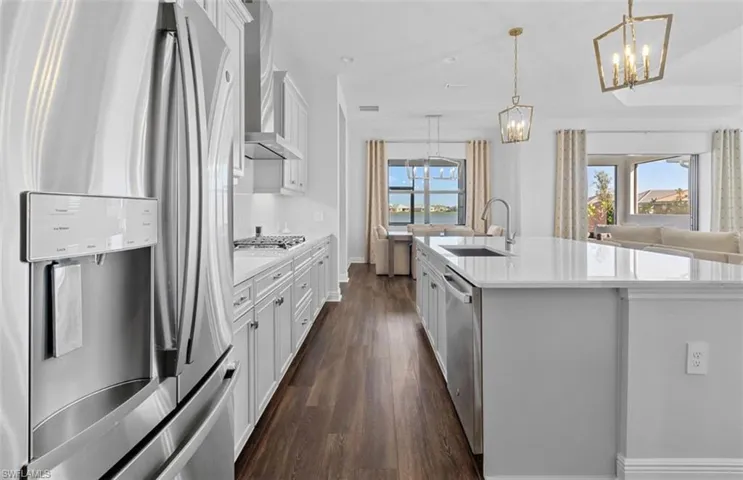 A MUST SEE!!! WHY WAIT FOR A NEW BUILD WHEN THIS GORGEOUS LAKEFRONT HOME IS MOVE IN READY. LOCATED IN NAPLES NEWEST COMMUNITY, SKYSAIL!! LOADED WITH UPGRADES, FEATURES A DESIGNER CHEF’S KITCHEN WITH BEAUTIFUL QUARTZ ISLAND, WALKIN PANTRY, STAINLESS STEEL APPLIANCES. DOUBLE OVEN, GAS RANGE, 42″CABINETS WITH QUARTZ COUNTERTOPS. ALSO FEATURING BUTLER’S PANTRY, 8FT DOORS, COFFER CEILINGS, IMPACT WINDOWS WITH PLANTATION SHUTTERS, FRENCH DOORS, POCKET SLIDER OVERLOOKING BEAUTIFUL LANDSCAPING AND LONGVIEW OF LAKE. MANY BENEFITS TO LIVING IN THIS COMMUNITY ONE BEING THE MOST BEAUTIFUL SUNRISES AND SUNSETS.. NATURAL GAS, LOW HOA FEES, X FLOOD ZONE AND SKYSAIL’S RESORT LIKE AMENITIES/ YOU WILL LOVE IT!