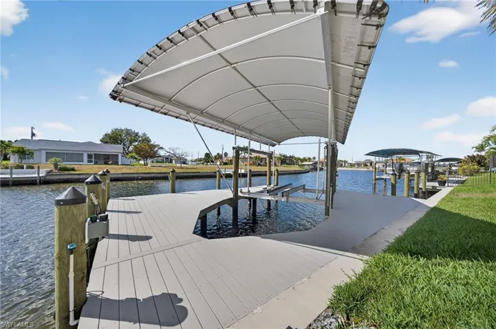 Set on a wide Gulf access canal, this property offers convenient boating access with a 12,000-pound boat lift, oversized walk-around dock, and extended boat canopy. Whether you’re heading out for a day on the water or enjoying sunset views from your lanai, this location is all about lifestyle.