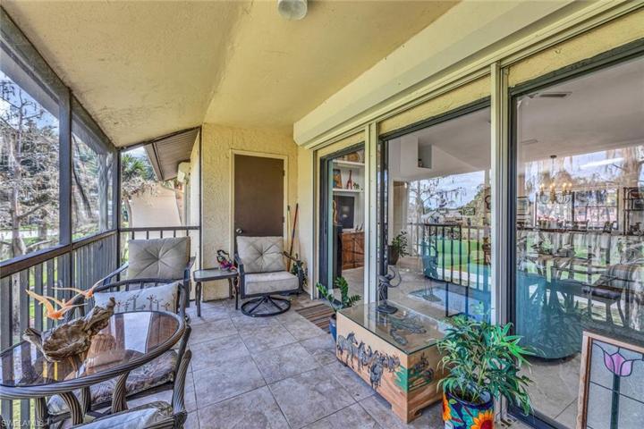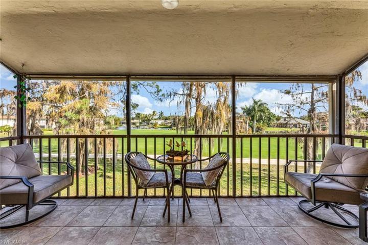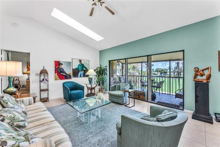 Exquisite 2nd floor Fairway Oaks Condo featuring cathedral ceiling with skylights that brighten the spacious open concept living/dining area. The condo has neutral large square porcelain tile floors and neutral palette furniture. Split bedrooms offer privacy and each bathroom has a newer vanity. The tile floor screened lanai looks onto the 1st fairway of the Pines Golf course and the lake with water feature. The kitchen is neutral with plenty of space for breakfast table and chairs. Oversized 1 car garage has plenty of extra storage space. Fairway Oaks is a partner of the Glades Golf & Country Club and enjoys all the amenities such as 2 Gordon Lewis designed golf courses that have been renovated with new irrigation and paspalum grass and landscaped in sustainable Florida plants and trees. Other amenities include, 9 swimming pools, New Pickleball Courts, New Tennis Courts, Bocce courts, shuffleboard, 19th Hole Restaurant, Pro Shop, and much more all just 10 minutes from downtown Naples finest restaurants and boutique shops and of course the Naples finest beaches. Furniture is considered not to have value and is being left as a courtesy of the seller.