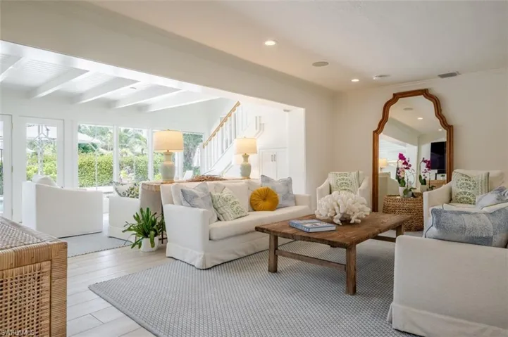 Welcome to your dream home in prestigious Aqualane Shores, where waterfront living meets luxurious design! This quaint cottage has been masterfully recrafted on a premium lot, boasting a custom dock and boat lift with a grandfathered cut out, ensuring unparalleled direct gulf access without any bridges. Inside, you’ll discover a breathtaking coastal interior featuring custom floors and exquisite craftsman millwork. The updated gourmet kitchen and fully renovated bathrooms elevate this home to modern standards of comfort and style. The thoughtfully designed floor plan offers a graceful flow between indoor living spaces and the serene outdoor oasis, ideal for relaxation and entertainment. Accommodating two master suites, this home provides versatility and privacy, with one suite located on the first floor and another on the second. An office area with stunning views overlooks the pool and water, perfect for work or leisure. The exterior boasts concrete siding and a newer metal roof, adding durability and charm. Strategically located just minutes from the vibrant downtown 5th Avenue South and 3rd Street South, you’ll enjoy access to world-class dining, shopping, entertainment, and the mesmerizing White Sands Beaches. This efficient and expertly designed waterfront home offers an extraordinary lifestyle in one of Naples’ most sought-after communities. Don’t miss the chance to call this Aqualane Shores gem your own!