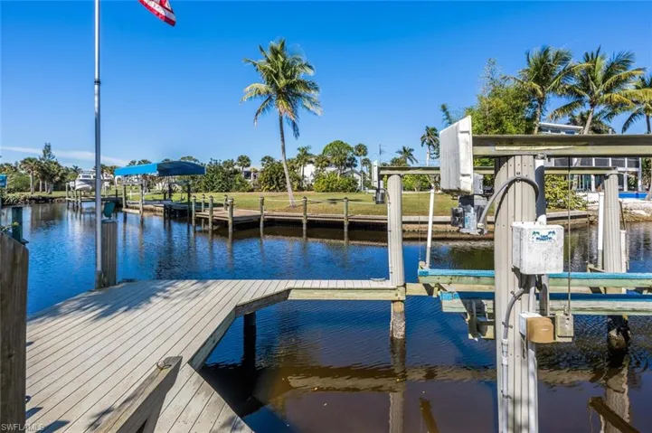 Welcome to this exquisite two-story concrete block single-family home, offering over 2,400 square feet of living space and a perfect blend of luxury, comfort, and coastal charm. This four-bedroom plus den, three-bathroom residence includes a spacious two-car garage, a fantastic workshop for all your hobbies or storage needs, and a versatile first-floor bedroom to possible use as an in-law suite. Nestled in the highly sought-after Bonita Springs, this property is a boater’s paradise, featuring direct access to the Ocean with a private boat dock and lift with two new motors. Step out to the relaxing and private lanai and fenced yard to embrace the serene beauty of waterfront living, where sweeping views of the water’s edge, the gentle breeze, and the currents create an idyllic environment for endless boating adventures. The expansive pool, ideally placed on the southern side of the home, captures the best of Florida’s sun—perfect for long, lazy tropical days spent lounging by the water. Designed with both practicality and luxury in mind, this home also includes an attached Accordion Hurricane Shutters for all of the windows and shutters throughout the home for added protection and peace of mind and a state-of-the-art whole-house generator ensures you’ll never be without power on this elevated property, no matter the weather. The house is designed to enjoy your favorite music with inside and outside wires for a sound system and speakers throughout the ceilings of the house and waterproof speakers at the pool and Lanai area. Whether you’re entertaining by the pool or out on the water, this remarkable property offers the ultimate boating experience and the coastal lifestyle you’ve always dreamed of. The Lifestyle of Bonita farms in Bonita springs is popular with boating enthusiast and anglers. The Imperial River is a popular area for boating, paddle boarding, canoeing, kayaking and residents can fish from their docks and watch wildlife such as the occasional dolphin. This is the first time these original owners have offered their beloved custom-built Gulfstream well-built home to the market.
