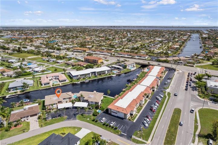 Watch the sunrise, passing boats, dolphins, and manatees from your large lanai. This beautiful 2nd floor condo is being offered partially furnished & over looks the gulf access canal with 1 bridge out to the Caloosahatchee River. This condo is in a 55+ community and just got all new boat docks, seawall, and irrigation, along with other property upgrades in the past year. New roof installed 2023. This condo also is equipped with electric hurricane shutters making it easy to secure your property while out of town or before a storm.Step inside and you will find a Spacious kitchen with plenty of countertop space. Brand new vanity countertops and faucets in both baths. Separate laundry room with extra storage. Boat docks are 1st come 1st serve basis. Centrally located with Publix grocery right across the street and just a short bike ride into downtown Cape Coral where you will find restaurants, entertainment, and much more. Property is on central water and sewer and assessments are Paid.