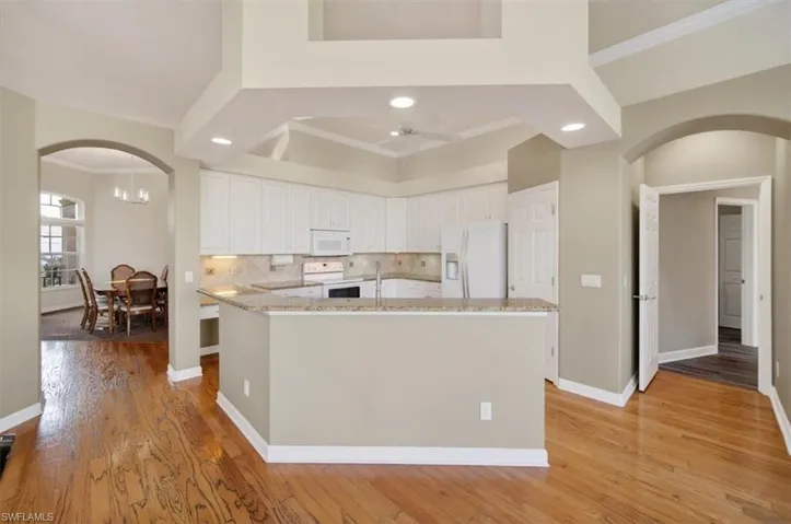 Welcome to this beautifully maintained lakefront home in the highly sought-after Reflection Lakes community. Rarely available, this single-level residence is one of the few five-bedroom homes in the neighborhood and offers an exceptional blend of space, comfort, and flexibility. Featuring five bedrooms plus a den, three full bathrooms, and a separate kitchenette ideal for guests or multi-generational living, the expansive floor plan offers over 3,000 square feet of living space and ranks among the largest layouts in the community. The open concept design feels bright and inviting, highlighted by high ceilings and oversized windows that fill the home with natural light while showcasing peaceful lake views. The kitchen is thoughtfully designed for both everyday living and entertaining, featuring stainless steel appliances, ample cabinetry, and a large center island that anchors the space. The spacious primary suite serves as a private retreat with a spa-inspired bathroom that includes a soaking tub, walk-in shower, and dual vanities. Step outside to the extended screened lanai where you can enjoy tranquil water views, morning coffee, and beautiful Southwest Florida sunsets, often accompanied by native birds along the shoreline. Recent upgrades include a new roof and a new air conditioning system, offering added value and peace of mind for years to come. Residents of Reflection Lakes enjoy access to resort-style amenities including a clubhouse, fitness center, community pool, and tennis courts. Ideally located near shopping, dining, parks, and highly rated schools, this home offers the perfect combination of space, lifestyle, and convenience.
