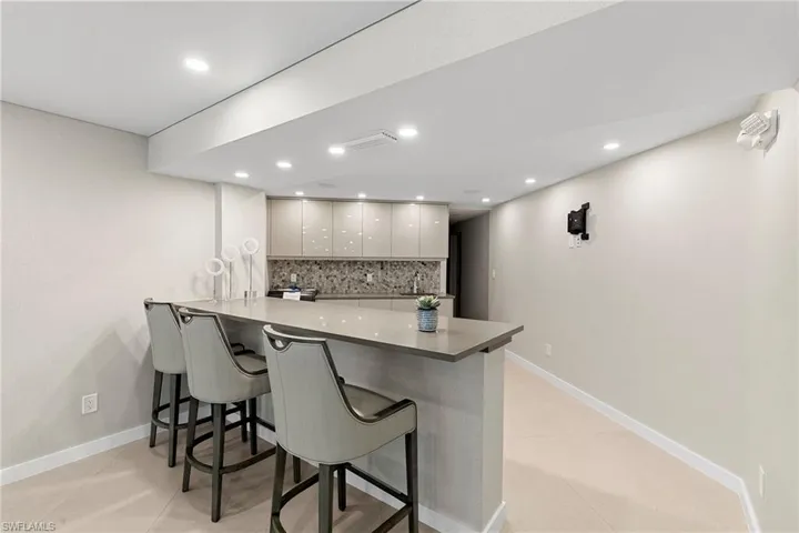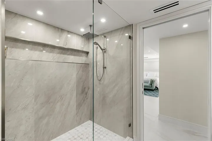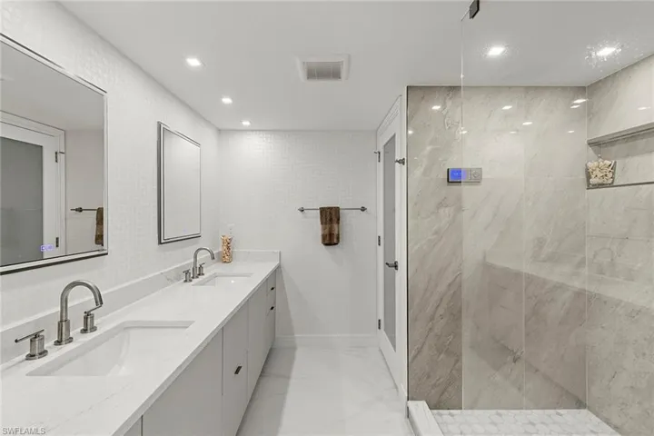 Enjoy refined coastal living in this beautifully renovated residence at Horizon House in Park Shore, with a comprehensive renovation completed in October 2025. This spacious two-bedroom, two-bath condominium offers an open, light-filled floor plan designed for everyday luxury and effortless entertaining, with meticulous attention to detail in every corner. The open kitchen, complete with a walk-in pantry and coffee bar, flows seamlessly into the living and dining areas. A serene tropical balcony overlooks the lushly landscaped community pool, framed by mature palms, while the primary suite enjoys a view of the Gulf and offers extensive storage with room for all your belongings, including an ample walk-in closet. Sophisticated, all new interior finishes include 24-by-48-inch porcelain tile flooring throughout, Taj Mahal quartz countertops in the kitchen and bar, Level 5 smooth wall finishes, a fireplace and spa-inspired baths with porcelain tile, quartz countertops, Toto bidet toilet, Madeli Illusion recessed medicine cabinets and Moen remote shower controls, including a steam shower in the primary suite. This residence has been completely reconstructed inside and behind the walls, including all new plumbing, electrical, HVAC systems and infrastructure. Recent improvements also include a new air conditioning system, new water heater and all new fixtures throughout. Added features include private laundry, impact-resistant windows and sliders, along with electric shutters. One assigned parking space and private storage are included. Horizon House enjoys a prime beachfront setting at southern start of the Park Shore Beach Association’s renowned paved beach walkway. Amenities include a heated pool, a newly renovated social room with catering kitchen and bar, fitness and game rooms, outdoor grilling area, bike and beach storage, electric vehicle charging onsite, on-site management and 24-hour staff on-site. Ideally near Venetian Village shopping, dining and marina, and just minutes from Waterside Shops and downtown Naples.