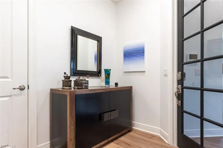 IMMEDIATE GOLF MEMBERSHIP! This highly sought-after Viansa Terrace home features stunning contemporary design paired with warm, modern decor. Upon entering via the private elevator, you are welcomed into a foyer leading to a thoughtfully designed open floor plan. This residence includes three bedrooms, each with en-suite bathrooms, and a cozy den/home office. The bright and airy kitchen boasts high-end appliances and beautiful quartz countertops, seamlessly connecting to the great room and spacious lanai, which offers tranquil views of the preserve. Additional highlights include ample storage and an oversized private two-car garage. Located within Talis Park, a premier golf course community designed by Norman, residents enjoy a variety of dining options, including the Vyne House and Casa Cortese Sports Pub. Talis Park features numerous amenities such as a community shuttle to Vanderbilt Beach, scenic walking paths, a resort-style pool, fitness center, spa, and a sports complex equipped with tennis courts, bocce courts, and a lap pool. This exceptional property is conveniently situated just moments away from world-class shopping, fine dining, entertainment, and the stunning white sand beaches of Southwest Florida.