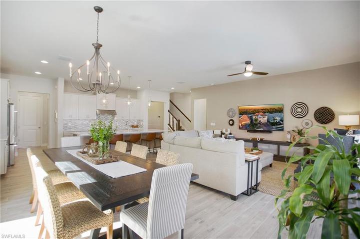 Welcome to your dream home in Naples, nestled within the gated community of Compass Landing. This luxurious residence offers a perfect combination of elegance, comfort, and modern living. With 4 beds, 3.5 baths, a flex loft space, den, and a screened-in lanai featuring a pool and plenty of entertaining space, this property embodies the best of SW FL living. The chef’s kitchen is equipped with stainless steel appliances, quartz countertops, and a spacious island with breakfast bar. The adjacent open living area is bathed in natural light, ideal for relaxing at home or entertaining guests. The den, complete with French doors from the foyer, provides a tranquil retreat for work or relaxation. The master suite is located on the ground floor, and three additional bedrooms upstairs provide ample space. Standout features include custom window treatments throughout, paved driveway that can hold up to 5 cars, a paved walkway around the house, large closets, and smart-home devices including lights and thermostat. Step through sliding glass doors onto the expansive screened-in lanai, where a pristine pool with a fountain and sun-shelf overlooks lush landscaping and one of the many eagle’s nests in Collier County. Whether you’re enjoying a refreshing morning swim or hosting a summer barbecue, this outdoor oasis is the perfect backdrop for creating lasting memories. Residents of Compass Landing enjoy access to a clubhouse, community pool, exercise room, and many community activities.