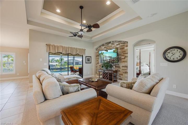 Don’t miss this 2017 PINNACLE built 3+ DEN, GULF ACCESS POOL HOME surrounded by newer homes. Meticulously cared for and loved! Eye catching curb appeal with stacked STONE ACCENTS, a patio area & a DOUBLE DOOR entry. The great room features beautiful stacked STONE accent WALL, DOUBLE TRAY ceiling, & sliders to the pool. Open kitchen offers wood cabinetry with crown molding, stainless steel appliances, a PANTRY, & a large granite ISLAND with bar seating. The owner’s suite offers a tray ceiling, a BARN DOOR to the ensuite bath featuring dual sinks & a large tiled shower with frameless glass door. FENCED back YARD! The boat dock features composite decking & a 10K lb boat lift with amazing intersecting canal views. Additional features include: WHOLE HOUSE REVERSE OSMOSIS, OUTDOOR SHOWER, PLANTATION SHUTTERS, lanai PLUMBED FOR SUMMER KITCHEN, A/C has a WHOLE HOUSE AIR PURIFIER, NEW ROOF 2022, fence in 2022, pool has changing colored lights, ATTIC STORAGE above garage. Brick paver pool area & walkway. Beautiful landscaping. Boating access to Matlacha Pass, Sanibel, Boca Grande, the Gulf of Mexico. NO MISERABLE MILE! Please watch the link of the walk through video of this stunning home. NO LOW BALL OFFERS WILL BE CONSIDERED.