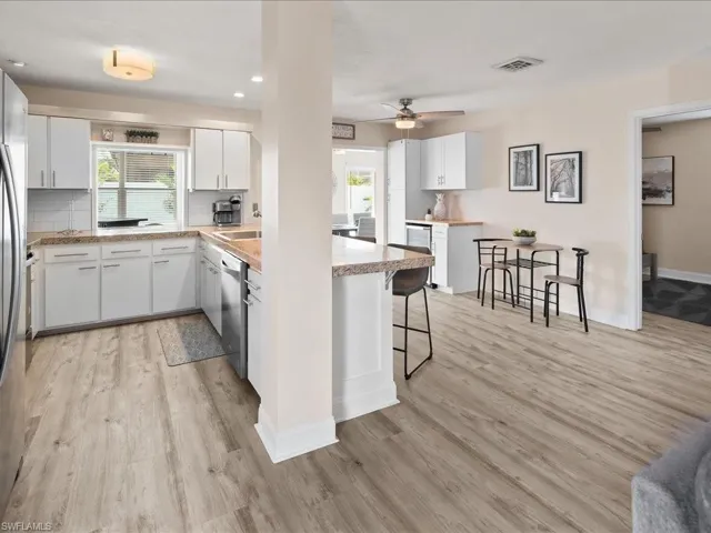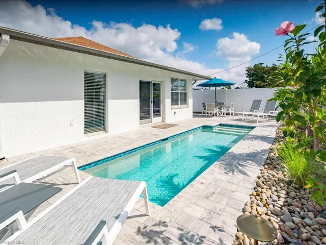 Welcome to your slice of paradise in the heart of Naples Park! Perfectly positioned on a desirable corner lot, this beautifully updated 3-bedroom, 2-bath coastal cottage offers the ideal blend of style, comfort, and convenience—just 25 minutes from SWFL International Airport. Step inside to discover a light-filled, open-concept layout with a designer-inspired kitchen featuring crisp off-white cabinetry, granite countertops, stainless steel appliances, and a large island perfect for gathering. The spacious primary suite offers a peaceful ZEN-like retreat with a spa-style walk-in shower built for two. Enjoy seamless indoor-outdoor living with a charming covered front porch, circular paver driveway, tropical landscaping, and a newly added pool and outdoor shower—your private oasis awaits! Located minutes from Vanderbilt Beach, The Mercato, and top-rated dining and shopping, this home delivers the ultimate Naples lifestyle. Proven income-producing short-term rental with strong rental history—perfect for investors or seasonal homeowners.