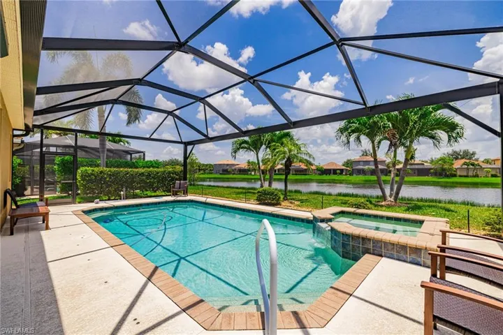 Don’t miss this incredible value for a lakefront pool home in Estero, featuring a NEW ROOF and IMPACT GLASS WINDOWS! This 3-bedroom + den, 2-bath home offers over 2,000 sq. ft. of well-designed living space and is loaded with upgrades, this home literally needs nothing! You’ll enjoy tile floors in the main areas, Pergo Luxury Vinyl Plank flooring in the bedrooms and den, custom plantation shutters, and new interior paint. The kitchen boasts 42” wooden cabinetry, quartzite countertops and stainless steel appliances. Additional improvements include a completely remodeled master bath, hurricane-rated front door, 2 Storm Smart lanai screens, generator ready transfer switch, new picture window pool cage, digital pool pump with salt cell, solar and electric pool heating, a 2-stage AC system (2019), hybrid water heater (2023), and upgraded fans and lighting throughout. The garage also features a newer motor, and the exterior was painted about five years ago. The list goes on … aggressively priced and is simply a Must see! Bella Terra is nestled on 999 acres, with half the community dedicated to lakes/preserves and home to a variety of native Florida wildlife. Features include a Resort-style Clubhouse, 24-hour fitness center, activities for all ages, resort-style pool and spa, shaded children’s play area, tennis courts, pickle-ball, bocce ball, sand volleyball, multi-use sports fields, tranquil butterfly garden, exercise trails and more. Call today and schedule your private showing appointment.