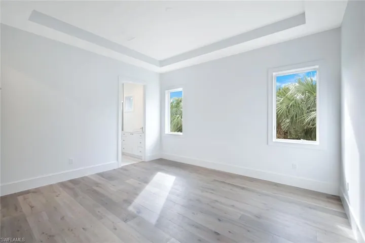 H13666 New construction, completion 2024. The Sanctuary is a 4-bedroom, den, and loft home with 4 bathrooms plus 2 half-baths. Built by Distinctive Communities in the gated North Naples community of The Enclave of Distinction. Within this private boutique neighborhood of 27 homes, the Sanctuary is situated on a beautiful private homesite with garden view. This 4,291-living area home boasts views as soon as you walk through the door, through the great room, to the resort-style pool with lap lane for the fitness enthusiast, outdoor cook center and fire pit. The gourmet-inspired kitchen features Monogram & Café appliances, custom wood cabinetry, and Omicron Granite-White Diamond countertops. The kitchen flows as one with the dining and great room with 16′ high ceiling accented with wood beams. The main suite on the first floor features volume ceilings, a luxurious bathroom with freestanding soaking tub, a walk-in shower, dual vanities, and two walk-in closets. Also located on the first floor is an en-suite guest bedroom that could also transition into a fitness room. The second floor includes two on-suite guest rooms, den/office and loft—minutes to shopping, gulf beaches, Mercato, SW FL International Airport, and fine dining.