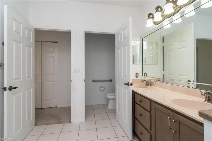 An Extremely Large, 3 Bedroom, 2nd Floor Condo with Attached Garage / A rare floor plan with 2 MASTER SUITES…. both with dual sinks, separate tub and shower and his and hers WALK IN CLOSETS. The 3rd Bedroom has comb. tub+shower and also a LARGE WALK IN CLOSET…… Open Kitchen Area with center Island plus a Breakfast Area….. PLUS a large Family Room !