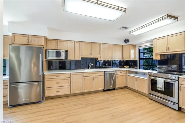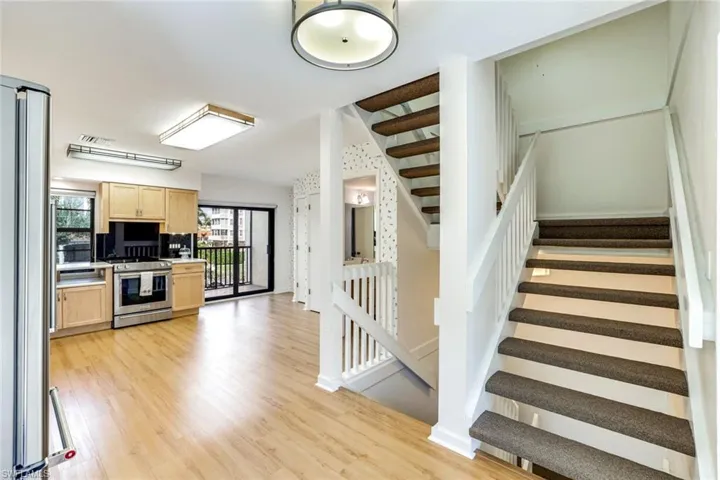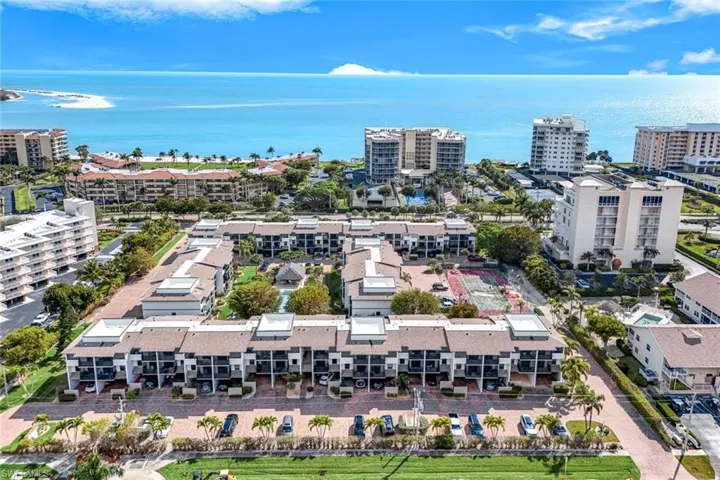 Welcome to Townhouse Square, a desirable community just a short walk to the white sandy beach of South Beach on Marco Island. This spacious and bright multi-level end-unit townhouse offers peace of mind with hurricane impact windows, sliders and doors throughout. The first floor features a covered carport, ample storage under the stairs and a large storage/workroom with slider leading outside. The second floor showcases an open living area with access to a screened lanai, an updated kitchen with light laminate flooring, KitchenAid stainless steel appliances, and wood cabinetry. A convenient half bath is located off the kitchen which is filled with natural light. The third floor features 2 bedrooms and 2 baths. Each bedroom also has their own private lanai. For convenience, the washer and dryer are also up on this floor. Community amenities include a pool and spa with chickee hut, tennis and pickleball and nicely maintained grounds. Best of all, enjoy the beach, a short walk away – no driving required, Welcome to paradise and your new home.