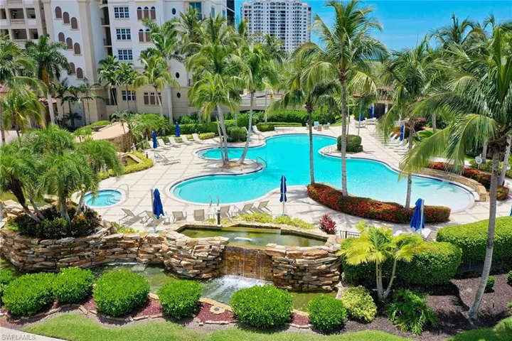 Welcome to this beautifully renovated high-floor end unit in Castella, where elevated luxury meets the tranquil beauty of Estero Bay. Perched above the treetops, this residence offers expansive, unobstructed views of the surrounding preserve and shimmering bay waters—an ever-changing canvas of sunsets, wildlife and coastal serenity. Inside, the completely refreshed interior exudes modern sophistication with upgraded finishes throughout. The open-concept floor plan is bathed in natural light, enhanced by floor-to-ceiling glass doors that lead to a fully tiled, oversized lanai, ideal for entertaining or simply unwinding with a breathtaking backdrop. The chef-inspired kitchen features sleek quartz countertops and premium stainless steel appliances, anchored by a large island ideal for casual dining and hosting. The spacious owner’s suite enjoys spectacular views and direct lanai access, a large walk-in closet and a spa-like bath. Two additional guest suites, each with en-suite baths, offer exceptional privacy and comfort. Castella is known for its lush, resort-style ambiance, highlighted by one of the most luxurious lagoon pools in the community, complete with a cascading waterfall, tropical landscaping and spa. The social pavilion, grilling area, and sun deck offer endless opportunities to relax or entertain. Additional amenities include two deeded parking spaces in a secure garage, a private courtyard with fountains, bicycle storage, and access to The Colony’s exclusive private beach island, tennis, pickleball, bocce, canoeing, kayaking and more, all included in the monthly fees, with no club membership required. The Bay Club offers unparalleled luxury while dining and enjoying the beauty of Estero Bay and beyond.