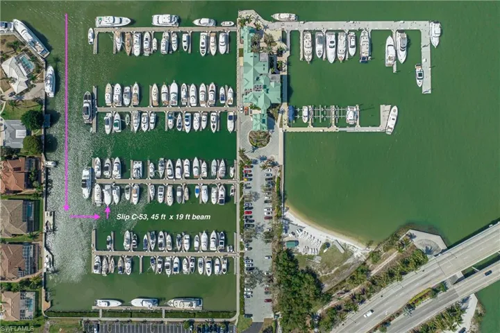 This Marco Island Marina 45 ft slip has a prime location on C-dock just 2 slips inside the T-head for easy entry, a max LOA of 49 ft & a 19 ft beam. For boats with a deeper draft, no problem, as you have a deep entry & at least 5-6 feet at MLT. Slip ownership here is deeded and now, with board approval, you can place a lift in the slip. Another major advantage to owning a slip here is that you can live aboard your boat or you can rent your slip out when not using it with marina management to make some additional income. Located close to all island amenities and with a quick out to the Gulf via the Marco River, this marina truly offers everything you need in the ultimate boat slip ownership. The docks are Bellingham concrete floating docks & there is a project in place to increase all piling lengths for additional dock storm protection. Quarterly fees are $791.88 totaling $3,167.52 annually & you are billed the RE taxes as an individual slip owner each year. The club house has a pool, gym, mail boxes, washer, dryer, showers, ice and a beautiful owner’s lounge inside. (You can now view the marina rules & the buyer application is online at MarcoIslandMarina.com under public documents.) Experience the best of Marco boating by keeping your boat in a protected marina basin & enter into a great group of boaters here at the Marco Island Marina!