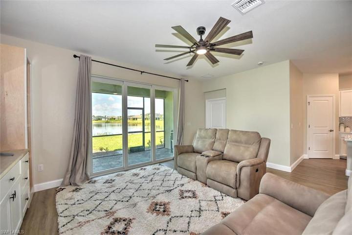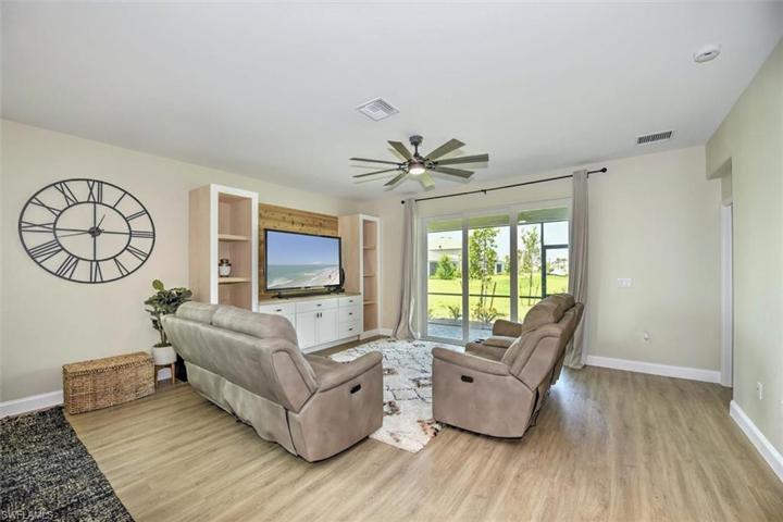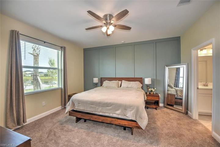 Welcome to your dream home in Trails Edge! This stunning single-family home offers the perfect blend of luxury, comfort,& modern living. With 4 spacious bedrooms and 3 bathrooms, there is plenty of room for the whole family to spread out and relax. The 2-car garage provides ample space for your vehicles and storage needs. Step into the heart of the home and be greeted by the sleek and stylish stainless steel appliances in the kitchen. The upgraded sink & quartz countertops add a touch of elegance. The open concept design connects the kitchen to living & dining areas, creating the perfect space for entertaining guests. Enjoy views of the lake from the comfort of your own backyard. The impact windows and doors not only provide security but also allow for natural light into the home. The wide paver driveway adds to the curb appeal of this beautiful property, making it the envy of the neighborhood. Indulge in the luxury of not one, but two master suites. (Perfect for your teenage daughter or in-laws) The attention to detail is evident throughout the home, with features such as the built-in entertainment center made of Aged Cypress hardwood.