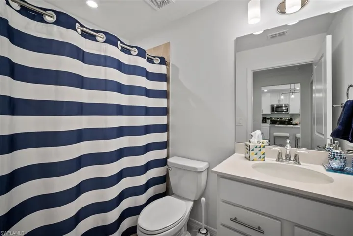 This Social Membership condo offers an open and inviting living space. The open-concept living room and large kitchen island are just adjacent to the dining area. The master suite boasts 2 large walk-in closets, a King Size Bed with adjustable controls, and an inviting Primary bathroom. The guest bedroom has a Queen Bed with an adjoining bathroom which is perfect for family and additional guests. The Den offers the perfect workplace retreat with a large desk and work chair, along with a sofa. The Rear screened lanai overlooks the private preserve. For your convenience, a full-size washer & dryer is included right in the condo. You will have access to the 1 Car detached Garage, private driveway and plenty of guest parking nearby.