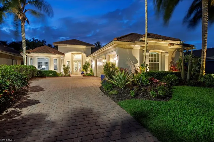Welcome to 20194 Markward Crossing, nestled within the desirable Villa Grande enclave of Grandezza. This beautifully updated 3 bedroom + den, 3 bath residence offers a serene, low-maintenance lifestyle with picturesque lake and golf course views that capture the essence of Southwest Florida living. With a spacious 3-car garage and the option to be purchased turnkey furnished, this home presents an effortless, move-in ready opportunity. A complete kitchen remodel anchors the home, featuring modern finishes, upgraded cabinetry, a brand-new glass top range (2026), new refrigerator (2025), and microwave (2024)—perfectly designed for both everyday living and entertaining. The open, light-filled floor plan flows seamlessly into the main living areas and out to the expansive screened lanai, where a private pool and spa create the ideal setting to relax, entertain, and enjoy tranquil views and stunning sunsets. Thoughtfully maintained and enhanced, the home includes a new roof with added gutters (2020), air-conditioning system (2019), water heater (2019), solar pool heater (2021), and a whole-house water filtration system (2023), along with storm protection for every window and door for added convenience and peace of mind. Residents of Grandezza enjoy access to a private championship golf course, fitness center, tennis, and a resort-style pool with poolside food and beverage service, all complemented by an active social calendar. Ideally located near shopping, dining, Hertz Arena, and Southwest Florida International Airport, this home offers both convenience and a vibrant lifestyle.