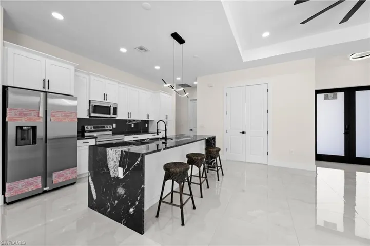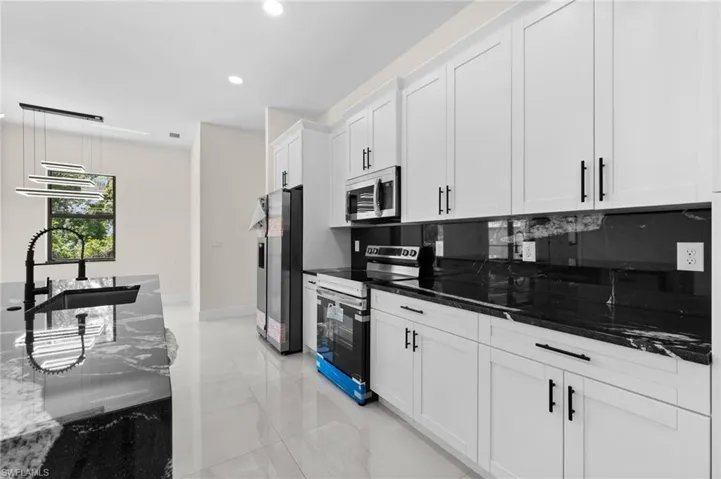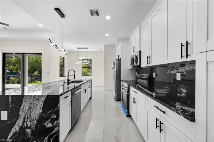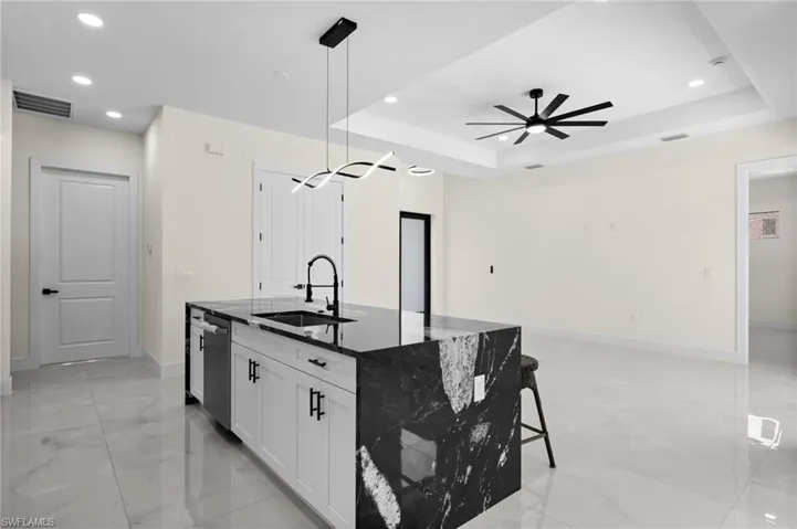 New construction! Beautiful 3-bedroom, 2-bath home plus den featuring a spacious open-concept layout with luxury finishes throughout. This property offers impact windows, elegant white flooring, and a modern kitchen with a large island and stainless steel appliances. The primary suite includes a walk-in closet, while the bathrooms feature dual sinks and glass-enclosed showers for a sleek, contemporary feel. Enjoy the outdoor kitchen, perfect for entertaining and relaxing. Designed with comfort, style, and functionality in mind, this home is move-in ready and ideal for both homeowners and investors.