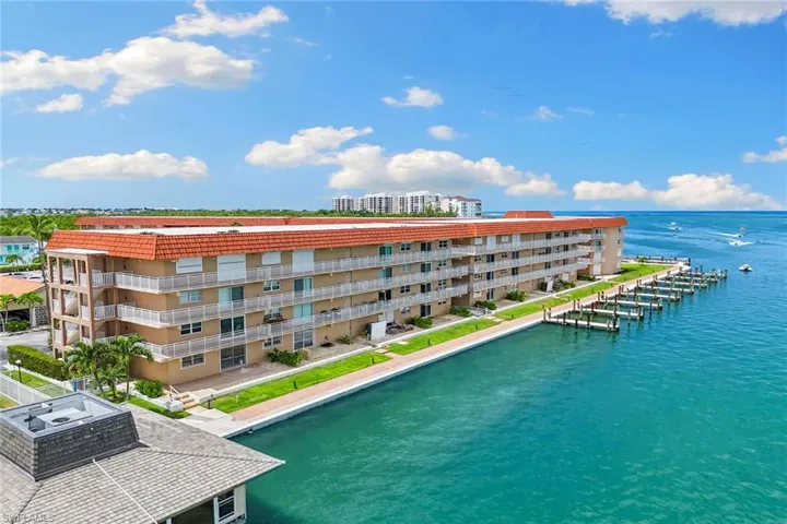 Top-floor end unit with show-stopping waterfront views. This is the ultimate in coastal living. Perched overlooking the Marco River, this fully furnished two-bedroom, two-bath condominium captures a front-row seat to the daily dance of dolphins, passing boat traffic and serene Gulf-bound waterways. Enjoy a wraparound balcony that frames the ideal vantage point to watch boats navigate from the river to open Gulf waters — a boater’s paradise. Inside, you’ll find updated baths with frameless glass showers, granite countertops in the kitchen, and thoughtful touches throughout. Additional perks include a covered carport, extra storage, manual shutters, and recently replaced roofs (2022) on the building and carports. In the charming enclave of Old Marco, Ville de Marco West is a hidden gem offering a relaxed, coastal lifestyle. Residents enjoy a west-facing fishing pier — a place to cast a line and take in Marco’s signature sunsets.