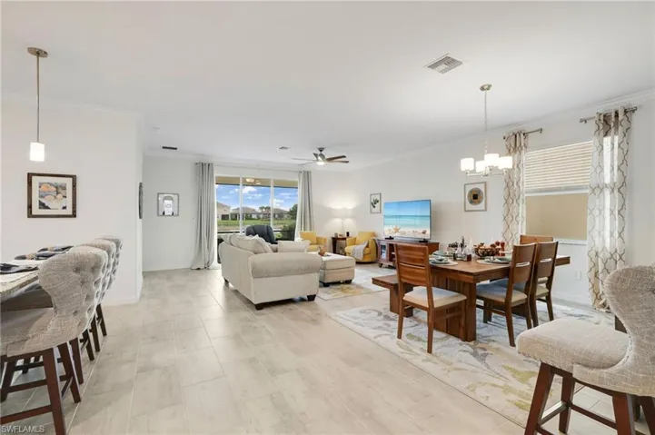 Welcome to your new Southwest Florida retreat at 16126 Rosemallow Ln, situated on a premium sunrise exposure lakefront lot! This best-selling Trevi floor plan features four bedrooms, three full bathrooms, and a wide open concept design with a large island kitchen and a great room that opens up to a spacious covered lanai. Large sliding glass doors and windows let in tons of natural light, creating a light and bright feel throughout the home. Inside, you’ll find upgrades such as porcelain plank tile floors in the main living areas, white shaker-style cabinetry, stainless steel appliances, crown molding, custom window treatments, and a fully-integrated smart home system. The exterior features upgraded custom landscaping and a large covered and screened lanai that provides stunning sunrise views over the widest part of the peaceful lake. Hampton Lakes is a gated resort-style community in River Hall, with upscale amenities such as a resort pool, fitness center with fitness studios, tennis and pickleball courts, basketball, sports field, hobby rooms, and an optional golf membership to River Hall Country Club. Don’t miss this opportunity, schedule your private showing today.