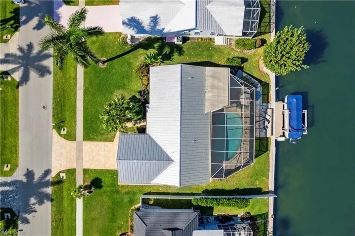 Beautiful Marco Island waterfront property. Newly updated turnkey 2 Bedroom 2 Bath plus Den home offers updated storm protection with impact windows and impact sliders, newer metal roof, panoramic screened-in lanai, private boat dock and boat lift, as well as many updates throughout the property.