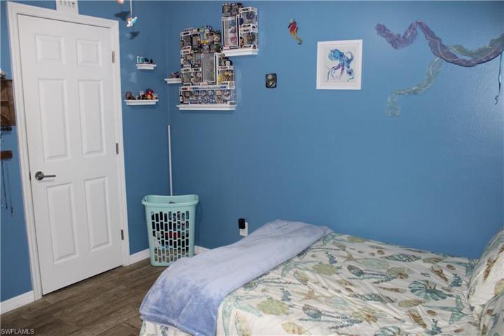 Over 2200 Sq Ft 4 bedroom plus den pool home in the NE Cape with quick access to Littleton Rd and Diplomat – close to all shopping and the VA clinic. This home features lots of living space and some of the largest bedroom in a home this size. The in home office features a full length built in desk for multiple computer stations. The whole house is tiled with wood plank in all the bedrooms and square tile in the rest of the home. The kitchen offers a bar style set up with a seperate area for the dining table. There is a large living area off the kitchen with access to the lanai through a single glass door but the whole back wall is covered with windows and offers lots of light to the living areas. Up front is you formal dining area that could also be used as an additional den. The Backyard is completely fenced with white vinyl fence and offers lots of green area that surrounds the Lanai and pool area decks all done in pavers. This home is secured by a 7 cameras system and it stays with the home.