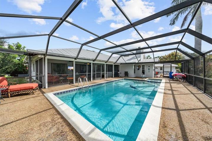 Situated on a huge lot in a prime North Naples location, there are endless possibilities to be found in this bright three bedroom, 2 full bath home including 2 – two car garages! A large primary suite with huge walk-in closet and updated en suite bath anchors one side of the house while two large, sunny guest bedrooms anchor the other. In between are a generous family room complete with fireplace and a nicely updated kitchen with breakfast bar and a pass through to the enormous lanai. An open living/dining combination has pocketing sliders that create an open flow with the lanai and family room making this the perfect place for large family gatherings and entertaining. Great floor plan that is easily expandable if needed.